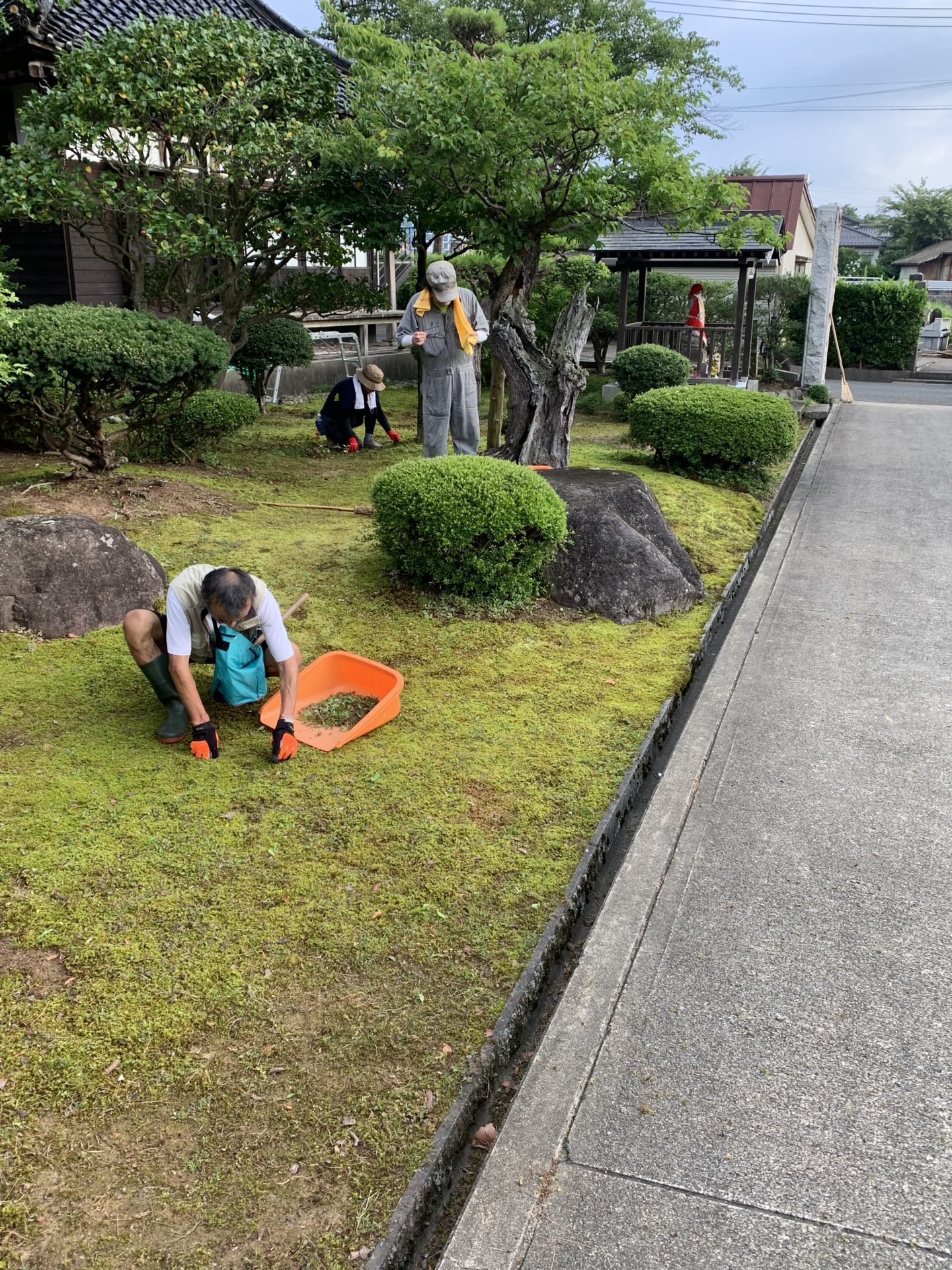 草むしりや草刈りをして